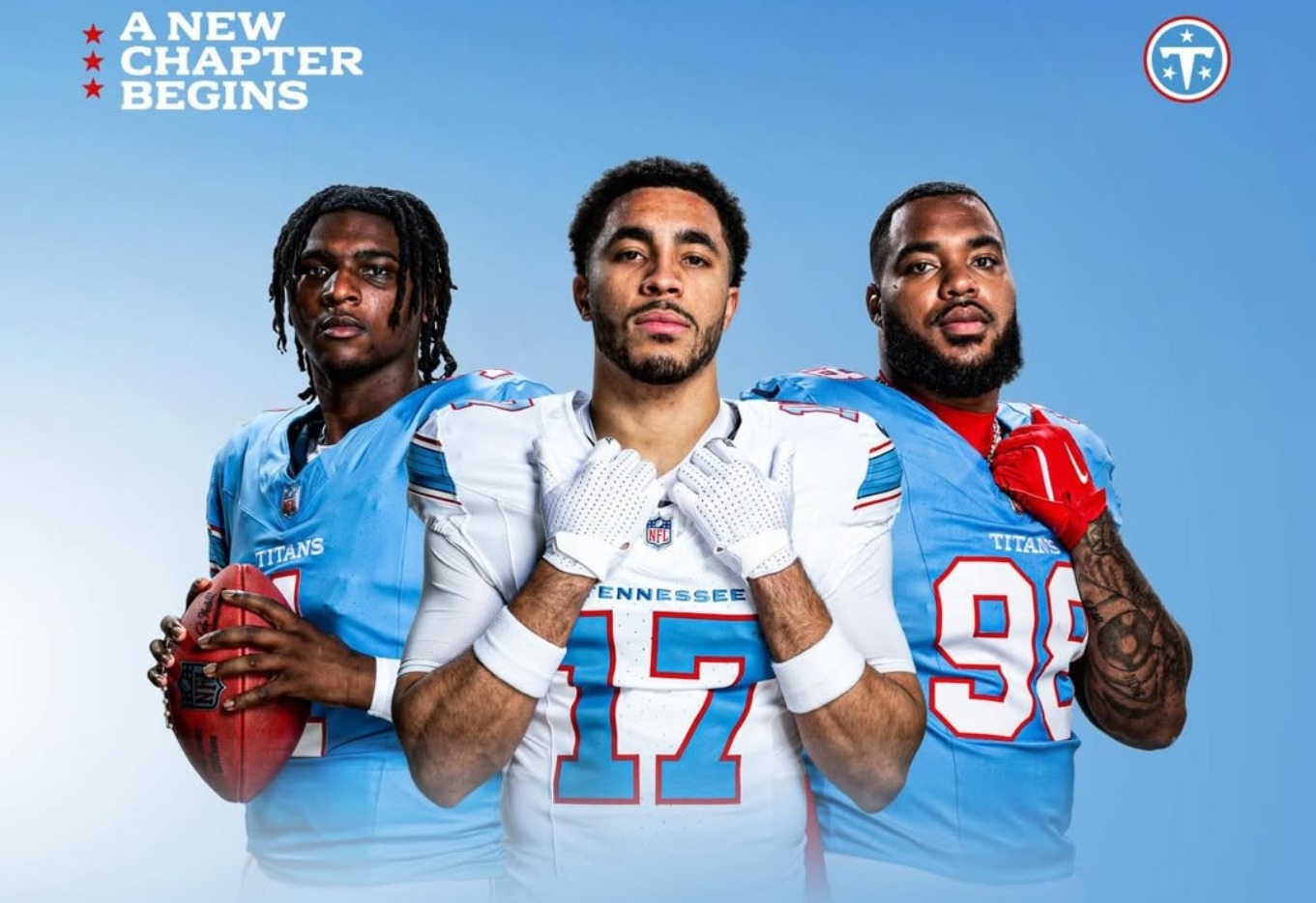 Die Tennessee Titans haben am Donnerstag ein komplett neues Jersey-Set sowie ein überarbeitetes Logo vorgestellt. Das neu gestaltete Emblem zollt den „Luv...