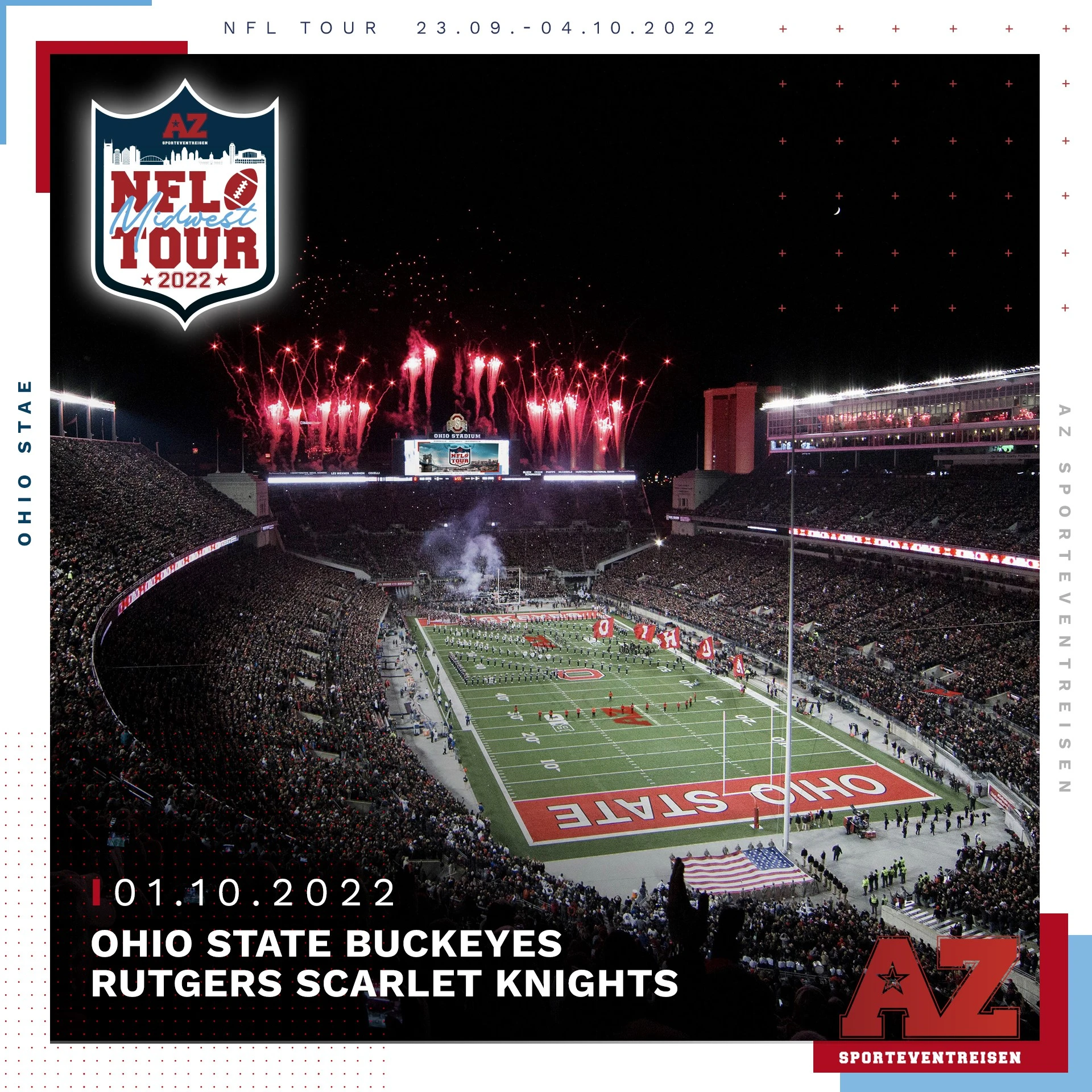 Bevor es aber im Lucas Oil Stadium das Spiel der Colts im AFC South Showdown gegen den Rivalen aus dem Süden, die Tennessee Titans gibt, erwartet dich noch ein absolutes Highlight. Du wirst nämlich am Samstag dem College Football Spiel der Ohio State Buckeyes gegen die Rutgers Scarlet Knights beiwohnen. Und das vermutlich dann vor knapp 100.000 Footballverrückten.