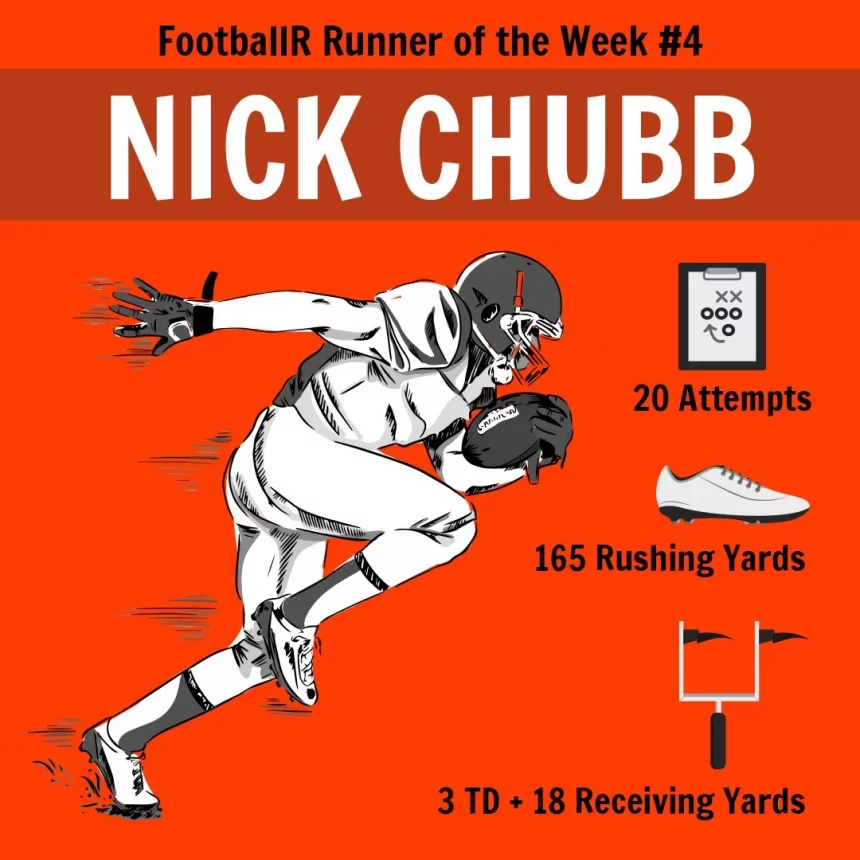 Chubb überzeugte sowohl aus der Shotgun als auch aus der I-Formation und war sowohl mit Inside- als auch Outside-Runs gefährlich. Die Defense der Ravens hatte somit wenig Gewissheit auf was für ein Play sie sich einstellen sollte, wenn Chubb sich im Backfield aufstellte. Dadurch lief der Runningback im Durchschnitt für 8,3 Yards pro Run und fing 3 Pässe für weitere 18 Yards.