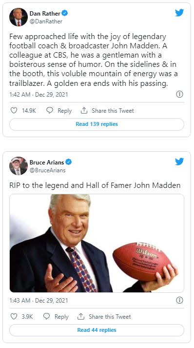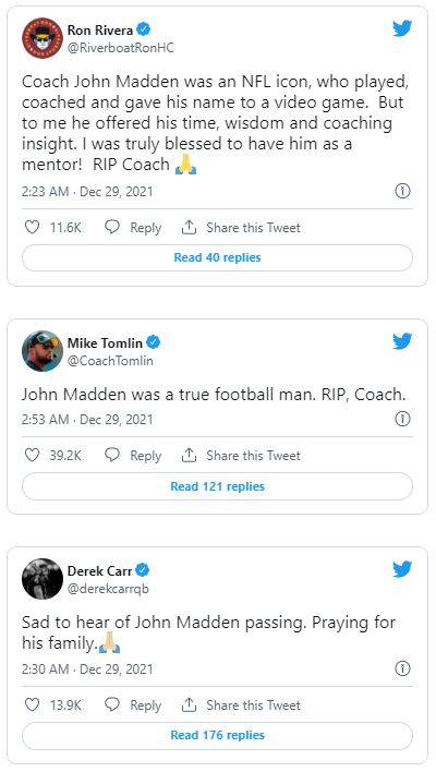 Reaktionen aus aller Welt zum Tod von John Madden